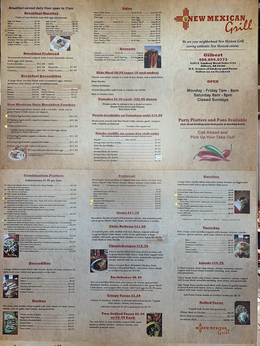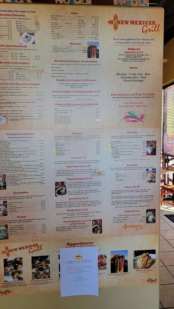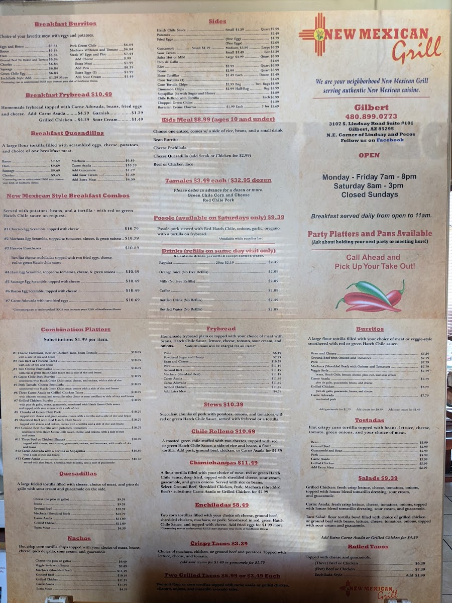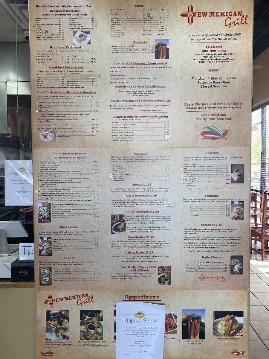 In summary, whether you're coming for breakfast, lunch, or dinner, New Mexican Grill in Gilbert offers an immersive taste of New Mexican culinary delights paired with an ambiance that welcomes diners of all kinds. Don’t miss out on this gem—come for the flavors, stay for the friendly service, and leave planning your return!
