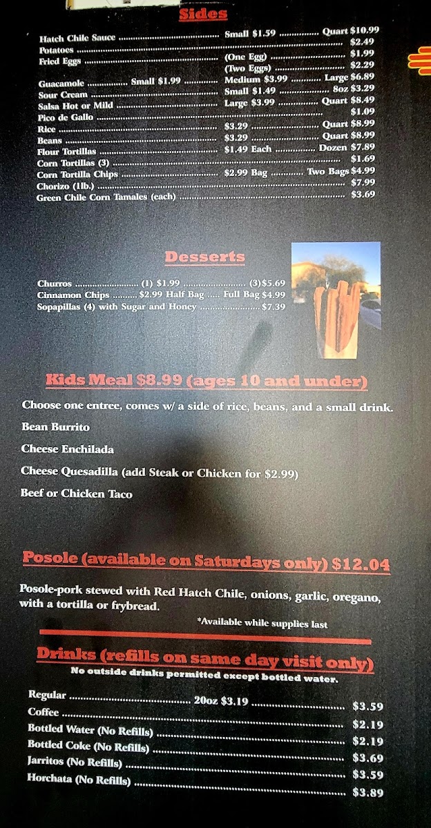 As you delve deeper into their menu, there are enticing sides that deserve a mention, like the Hatch Chile Sauce (complimentary!) and Green Chile Corn Tamales at a reasonable $3.69. Whether you’re opting for a spicy touch or a comforting side of rice or beans, there’s no shortage of options to elevate your dining experience.