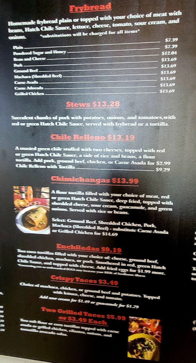 The highlight of New Mexican Grill is undoubtedly its authentic offerings that showcase the vibrant flavors of New Mexican cuisine. A local favorite, the Breakfast Frybread is a must-try, priced at just $13.39. This dish serves as a delightful canvas for various toppings and flavors, making each bite an adventure in taste. If you're in the mood for something crispy and savory, the Chimichangas are a fantastic choice. Stuffed with your selection of meat and doused in either red or green hatch chile sauce, these deep-fried delights are then crowned with shredded cheese, sour cream, and guacamole. They come, of course, with a side of rice or beans, making for a hearty meal at only $13.99.